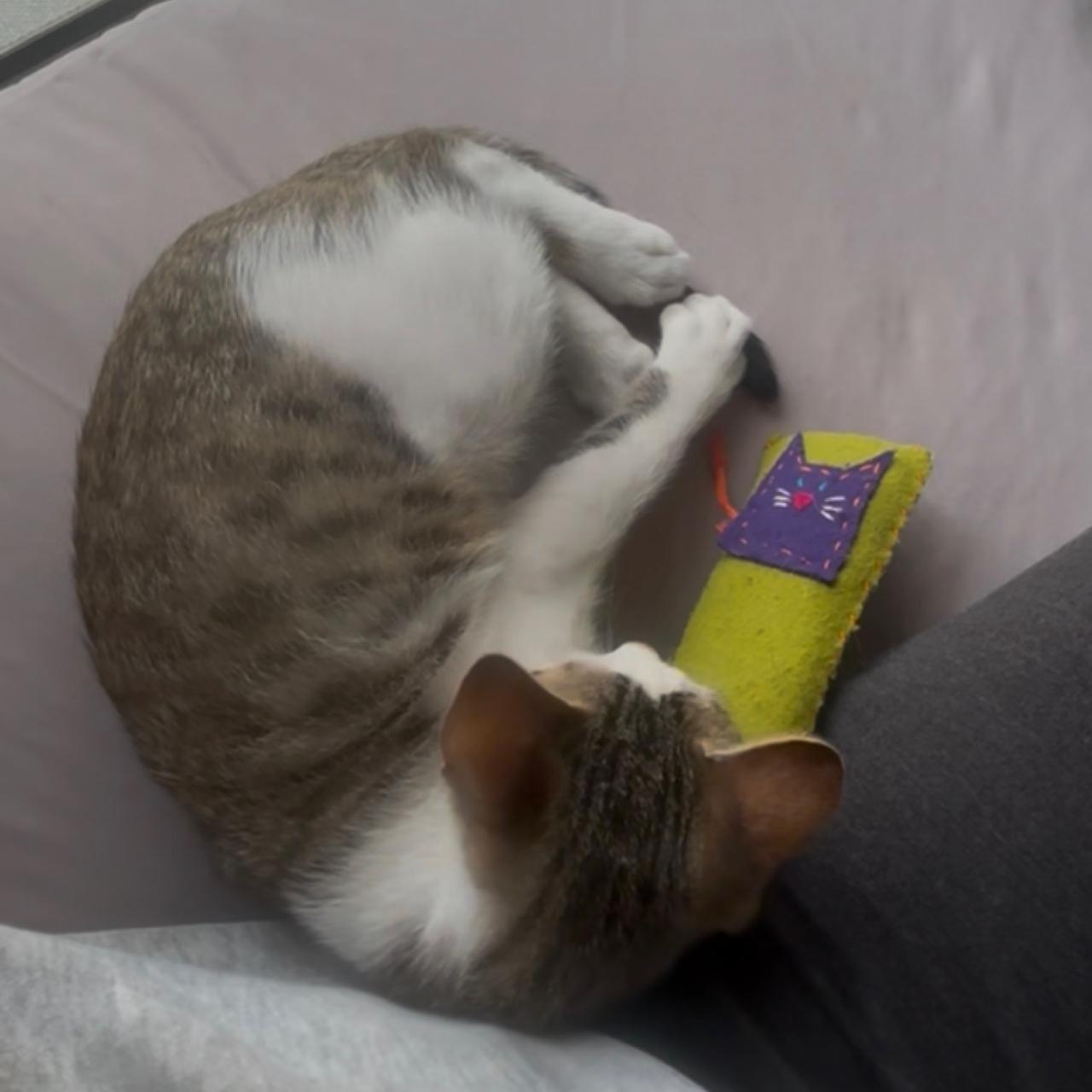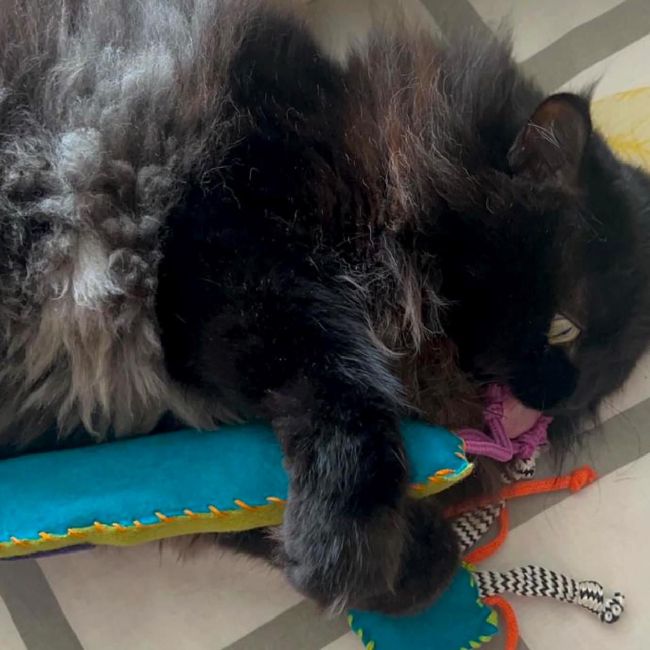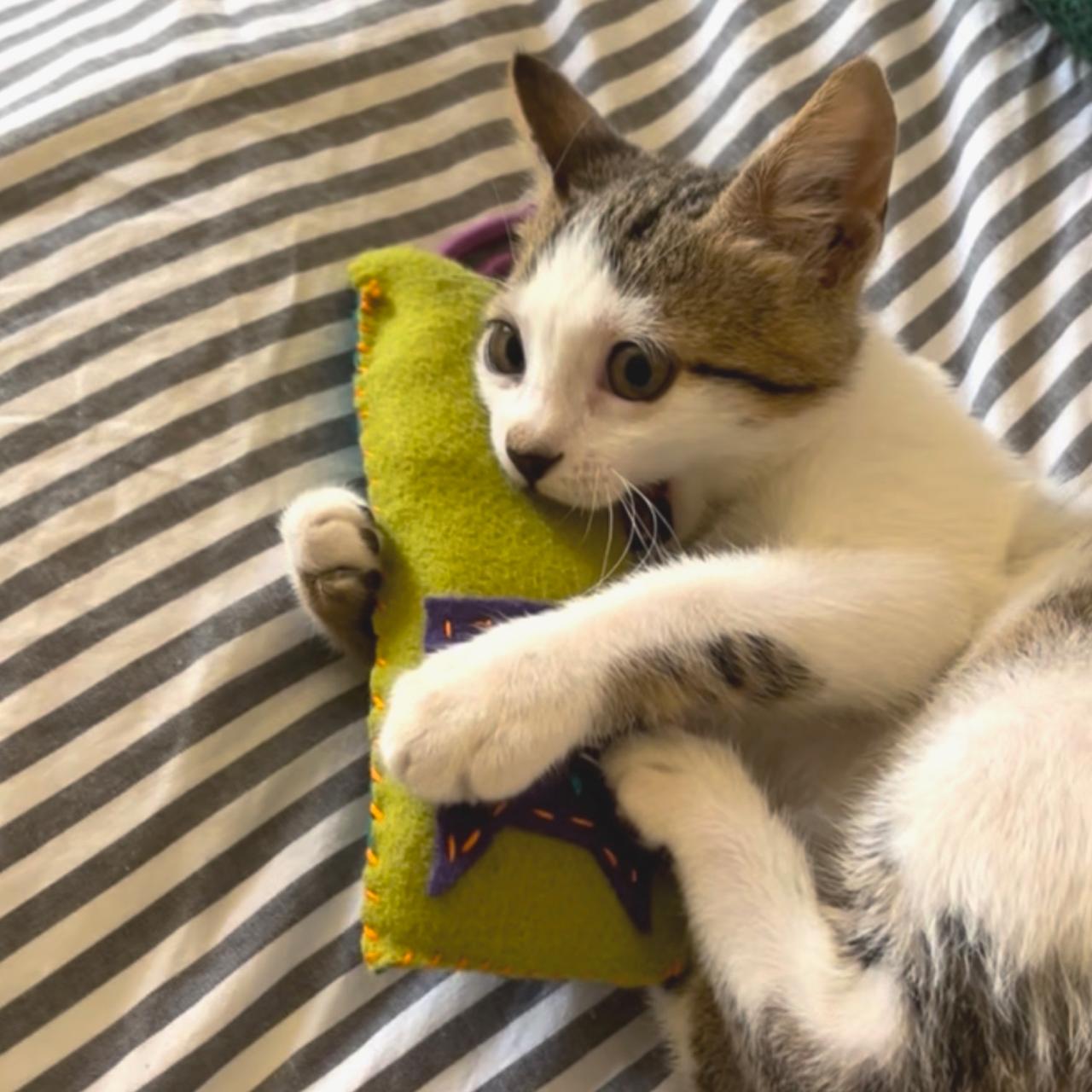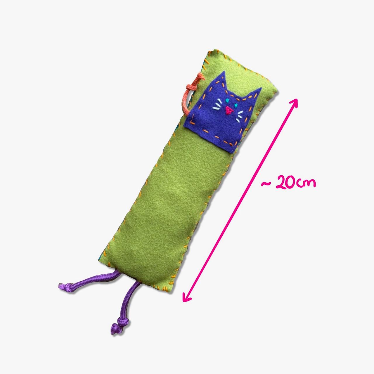 Introducing the ultimate cat kicker toy — a playful and engaging companion for your feline friend! Perfect for both adult cats and kittens, this locally handmade toy is crafted from soft felt and designed to delight with every kick and bite. Kittens will love sinking their teeth into it, giving them a great outlet for their biting instincts — no more nipping at your hands! The toy crinkles as it’s squeezed, adding a sensory thrill, and the jingle bell inside rings with every swat, making it impossible for your kitty to resist. Fun, functional, and oh-so-cute, it’s the purrfect way to keep your cat entertained and help them channel their energy in the right direction!