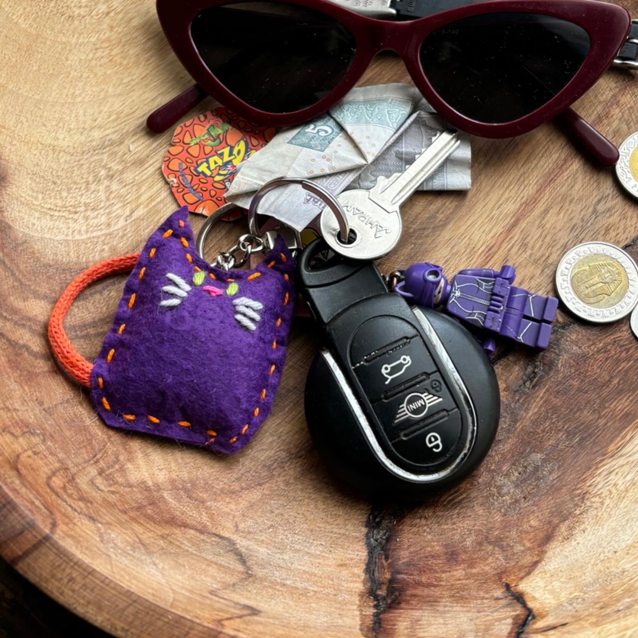 This handmade felt keychain is a cheerful little nod to all things feline! Made from soft, eco-friendly felt, it features a cute, stitched cat design that’s perfect for adding a playful touch to your keys, bag, or any accessory. Whether you’re a cat lover or just enjoy fun, handmade items, this keychain is a sweet way to carry a bit of feline joy with you wherever you go.