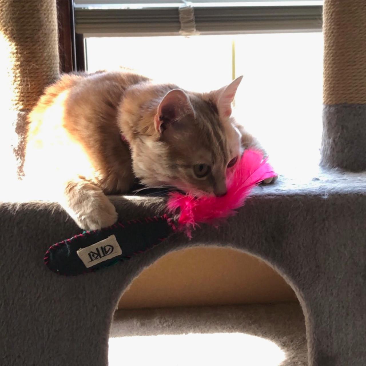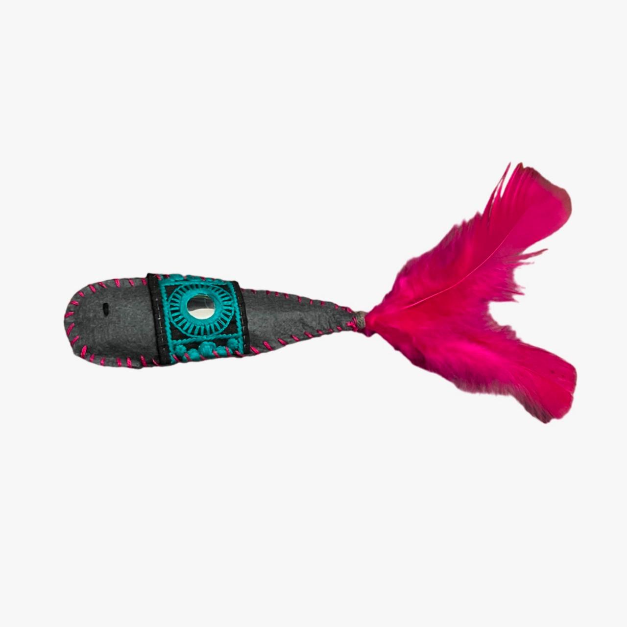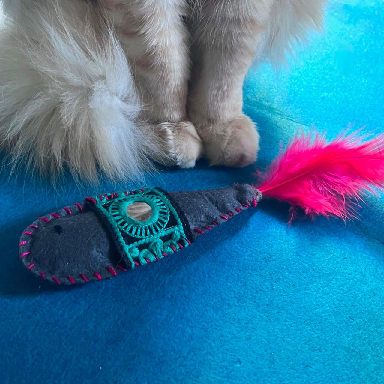 The Silver Fish Toy is designed to spark your cat’s natural hunting instincts by mimicking the shape and size of a real fish. Made from soft felt, this playful toy features a feathery tail that will have your cat pouncing in excitement. Inside, a jingle bell adds a fun sound that catches their attention, while the crinkly texture inside gives an extra sensory thrill when squeezed. At approximately 20 cm, it's the perfect size for bat-and-pounce play, just like a real catch.