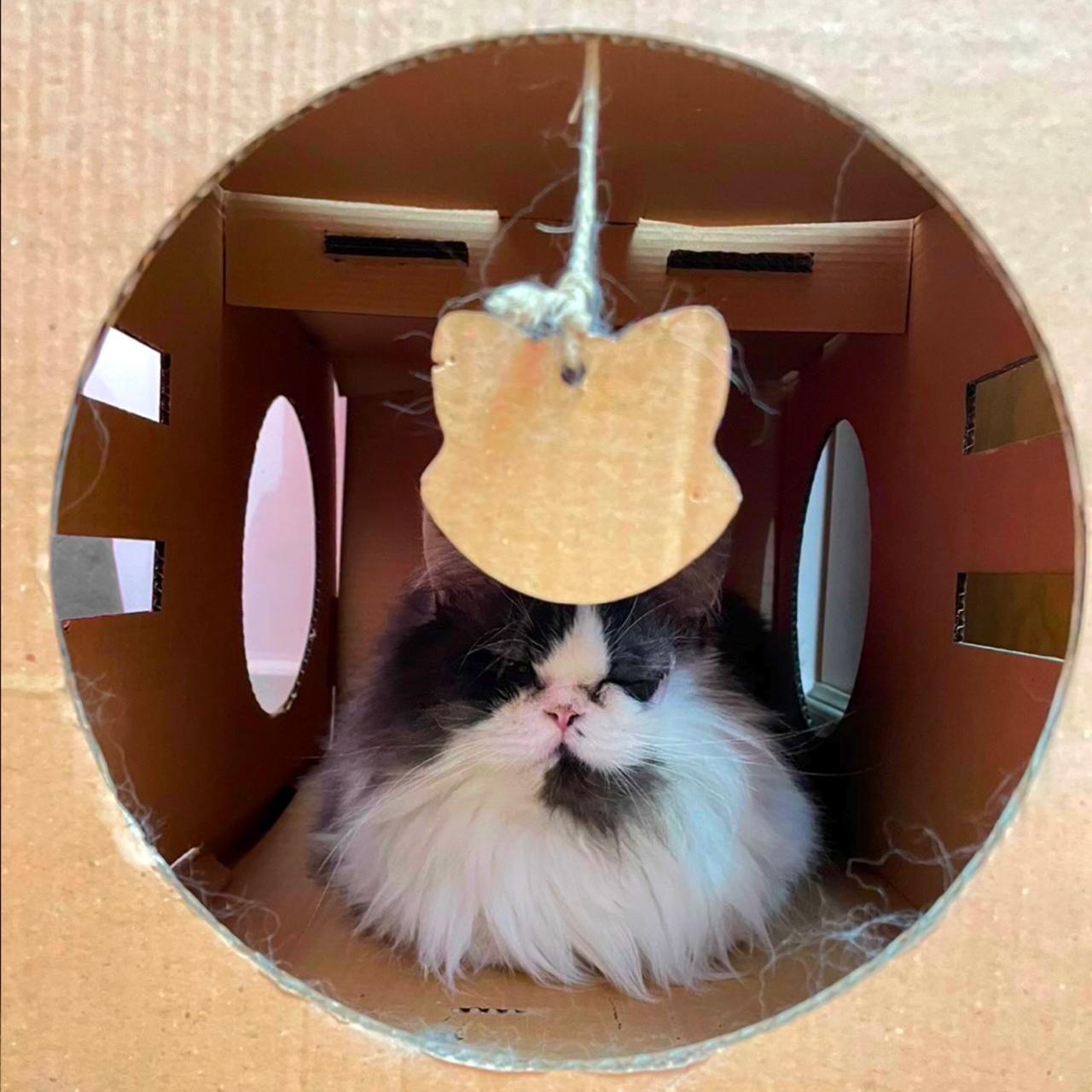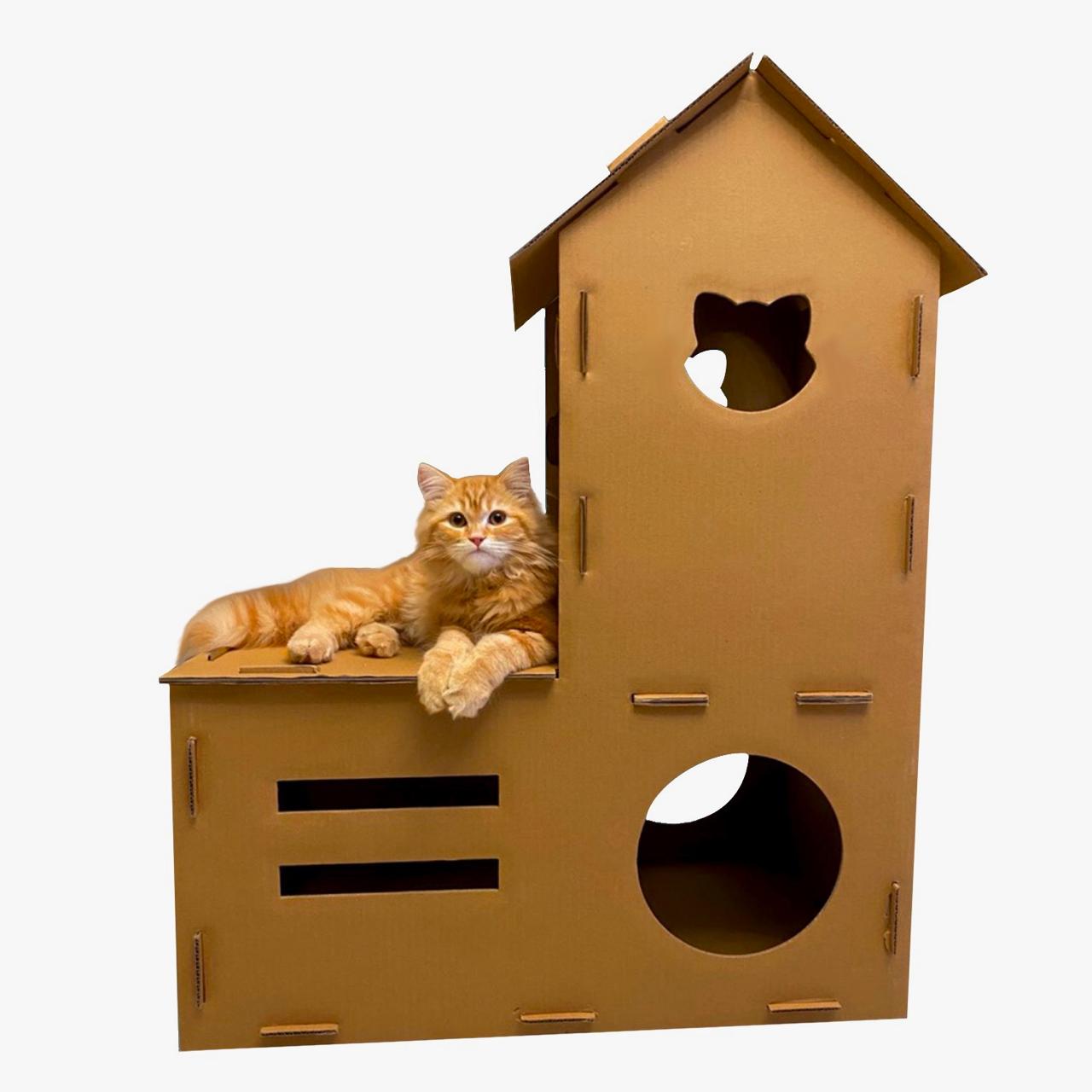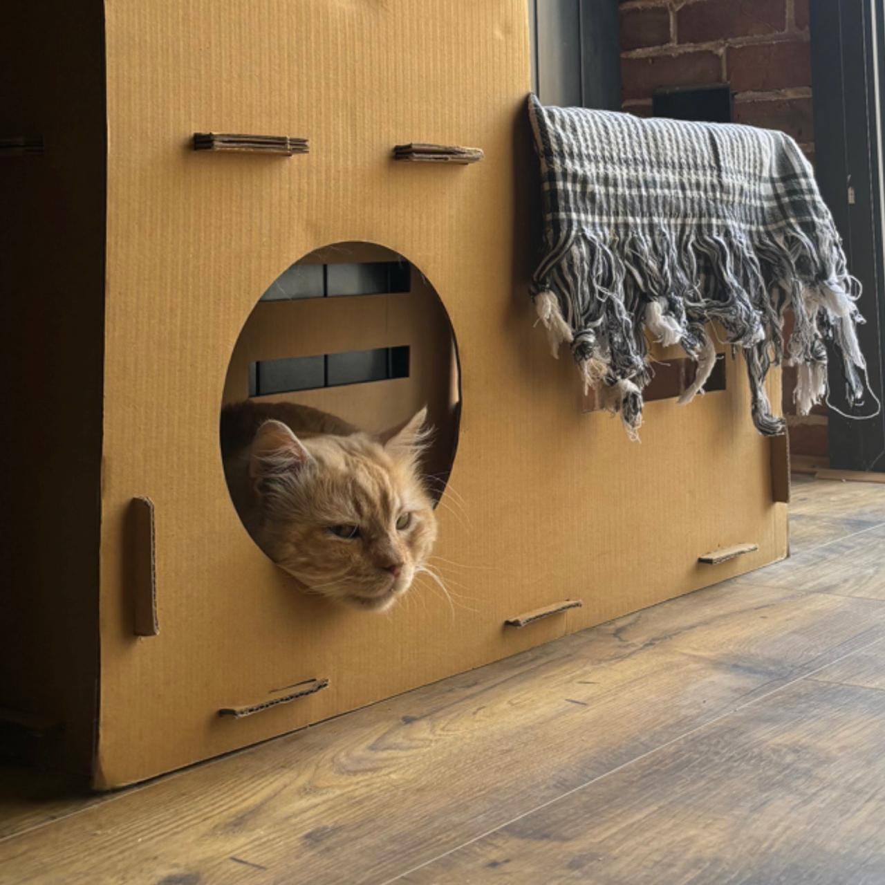 Cats have an instinctual need for spaces to hide, perch, and play — and this two-level cardboard playhouse checks all those boxes.