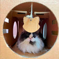 The slits and windows offer plenty of interactive opportunities, allowing your cat to peek out or play with you or other cats. Dangling cardboard cat faces add a playful touch, perfect for swatting and pouncing.